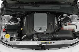 The V8s feature a multi-displacement system that conserves fuel by shutting down four cylinders when they're not needed to maintain the car's momentum, is invisible; we knew it was there and were looking for it, and we never felt the slightest trace. The 5.7-liter Hemi V8 that comes in the R/T is rated at 340 horsepower.